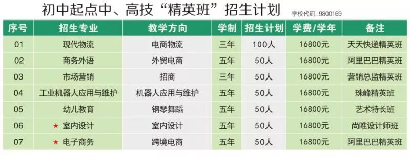 2. 助學政策:學生每讀滿一學年可免收:空調宿舍住宿費800元/年(精英班的學生入住1500元/年的6人間公寓宿舍)、校服費400元(含五套)、軍訓服裝租賃費85元、床上用品費380元(含8件套)。(計劃一般專業(yè)招生3750人,精英班招生620人。預計今年助學補貼金額達:771萬)