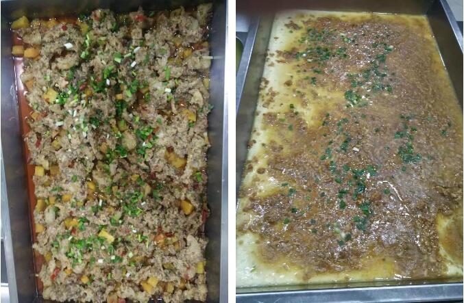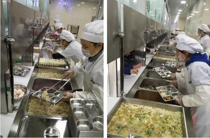 食堂從業(yè)人員全部持健康證上崗,上班時(shí)間統(tǒng)一規(guī)范著裝,所有人員佩戴工衣、工帽、口罩、圍裙,不得穿戴手表、飾物等。他們嚴(yán)格按照《餐飲服務(wù)食品安全操作規(guī)范》進(jìn)行加工操作,做到食物燒熟煮透、生熟分開(kāi),嚴(yán)格落實(shí)用具分類制度,防止食物交叉污染。師生飯菜同時(shí)烹飪。