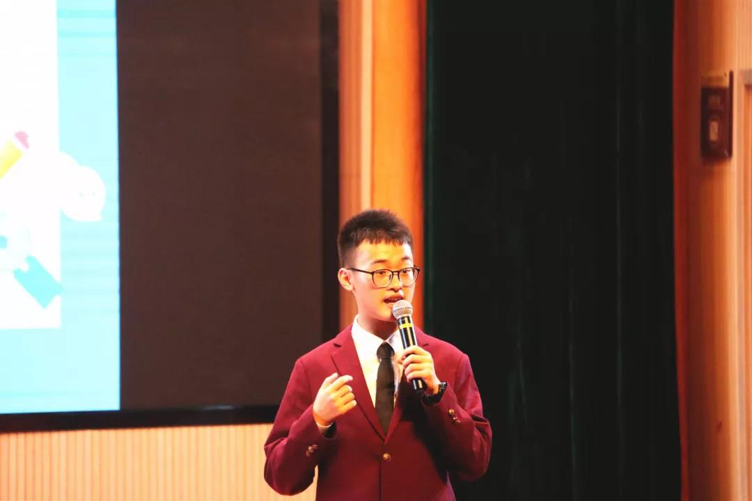 9號選手陳思翰同學的演講一改傳統(tǒng)風格,緊扣主題,精心準備的背景音樂與演講內(nèi)容相互映襯,獨具匠心地把互動環(huán)節(jié)融入到演講之中,營造出現(xiàn)場十分熱烈歡快的氛圍。