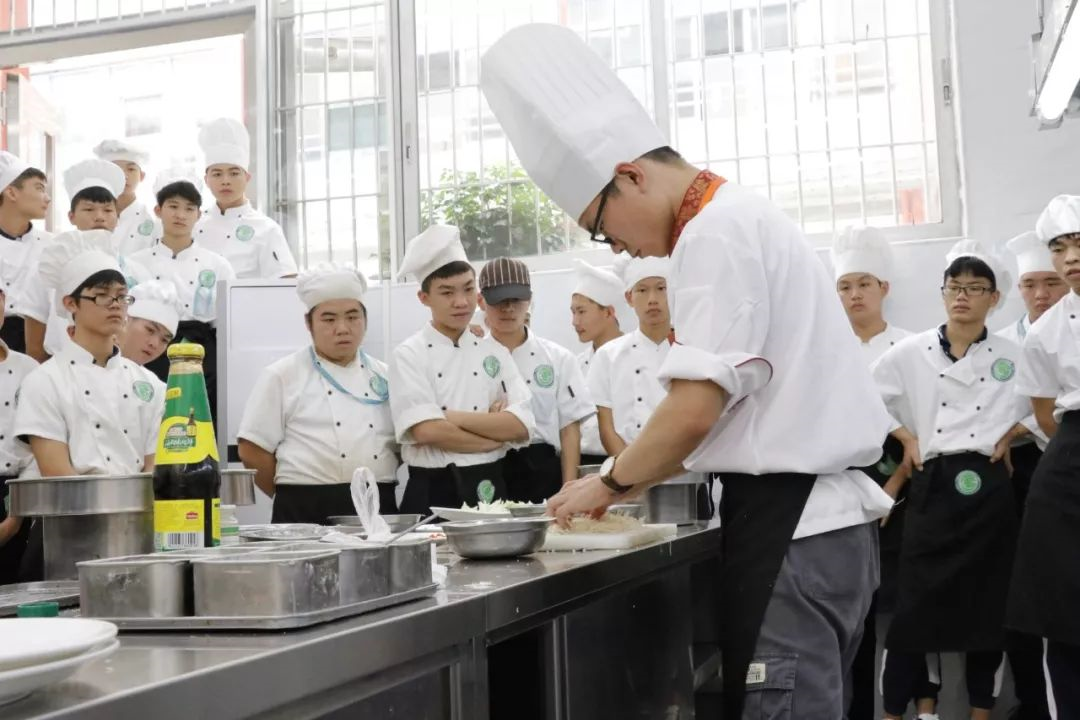 相對于還在學顛鍋,練刀工雕工,揣摩時間火候的同學來說,烹飪老師們之間的PK就可以說是「神仙打架」,同學們唯一的「勸架」方式就是好好看,好好學,別開小差。看老師們認真專注的樣子,收放自如的操作以及比平時放大十倍的氣場,就知道什么叫專業(yè),這里面包含的是一種十足的自信,以及唯美食不能辜負的「態(tài)·度」。
