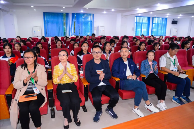 谷希歐公司董事長袁應權、總經(jīng)理陳彥榮、業(yè)務骨干雷麗紅,高新技校校長助理孫建華、教務處處長田春元、經(jīng)貿(mào)系主任向莎莎、商務外語專業(yè)負責人劉敏、17商務外語高技班主任陳靜儀、商務外語組全體教師出席了儀式,17商務外語高技班全體同學來到了現(xiàn)場。17商英高技班諸敏同學擔任了本次儀式的主持。