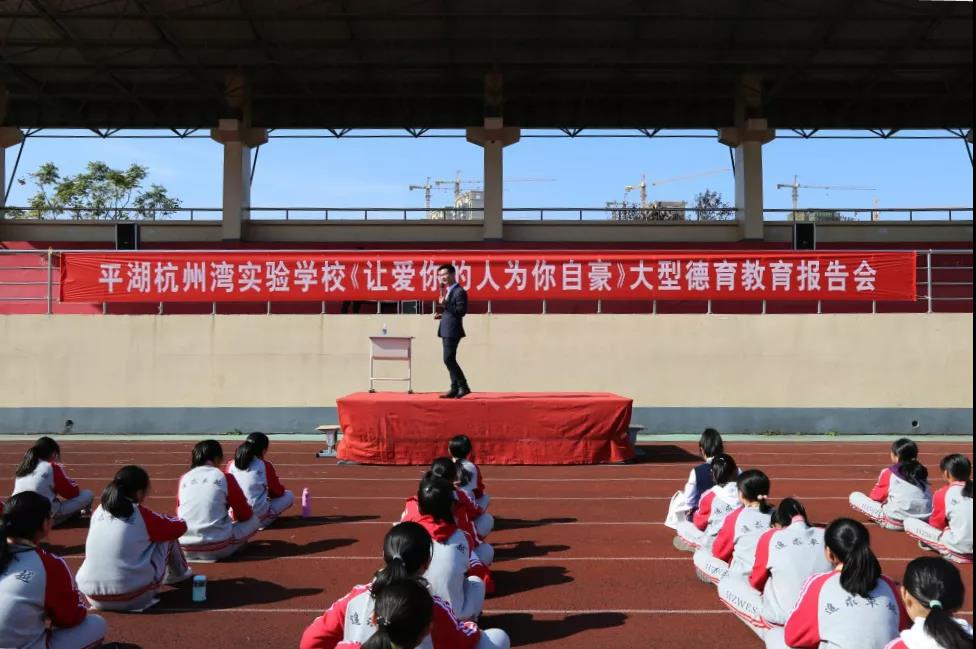 家長會第二站在學(xué)校大操場——感恩勵志演講。我校特邀善朝教育集團(tuán)全國巡講團(tuán)的周廷諭老師,為初一學(xué)生及其家長舉行了一場“讓愛你的人為你自豪”的大型家校共育報(bào)告會。