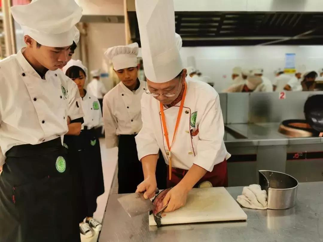 吳曉藍(lán)在教學(xué)上對(duì)學(xué)生要求嚴(yán)格,他從原材料的選擇、刀工、火候、擺盤(pán)都要求學(xué)生做到精益求精。學(xué)生們很樂(lè)意跟隨這位大師傅學(xué)廚藝,覺(jué)得能學(xué)到真本領(lǐng)。