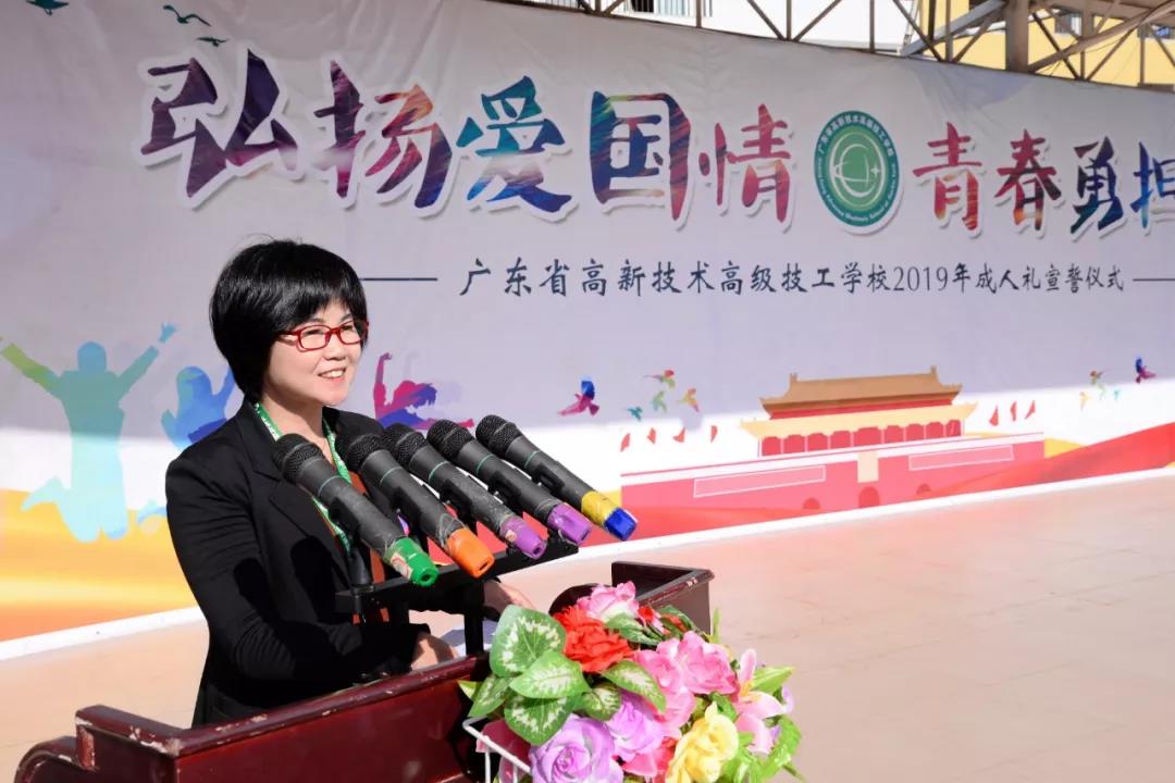 為本屆成人禮進行開禮致辭的是廣東省高新技術(shù)高級技工學(xué)校執(zhí)行校長肖中圓,作為學(xué)校領(lǐng)導(dǎo),她對來參加成人禮的各位家長、籌備本次活動的工作人員表示感謝,作為長者代表,她對莘莘學(xué)子寄予諄諄囑托和殷殷期待。
