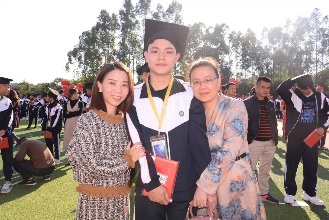 “孩子,首先你要學(xué)會感恩。感恩你們的父母,感恩你們的老師……勇敢地面對困難,堅定地走出每一步……”18電商9班黃慶成的家長將三句話,七個字“感恩”、“勇敢”、“正能量”,代表全體家長寄語并祝愿孩子們,未來擁有一個快樂且夢想成真的美好人生。