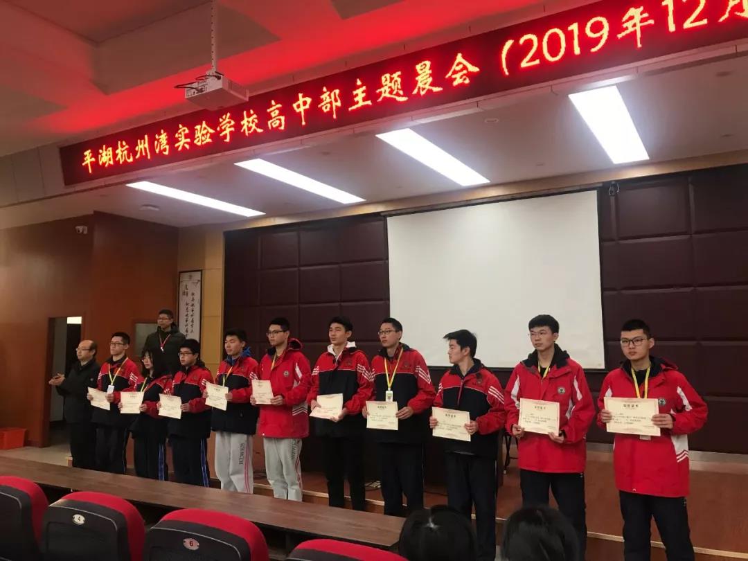 小報(bào)告廳內(nèi),“高一(2)班是一個(gè)團(tuán)結(jié)拼搏,勤奮樂學(xué),愛好和平,自強(qiáng)不息的班級(jí)。”隨著主持人陳昕奕、胡怡馨同學(xué)的介紹,一周一次的平湖杭州灣實(shí)驗(yàn)學(xué)校高中部晨會(huì)開始了。在三十余分的晨會(huì)上,有高一(2)班的班級(jí)介紹,有劉廣興副校長(zhǎng)對(duì)授獎(jiǎng)班級(jí)和寢室的名單宣布,有張朝主任對(duì)成績(jī)優(yōu)秀學(xué)生的頒獎(jiǎng)儀式,有王域主任組織的十大學(xué)星、優(yōu)秀班干部、優(yōu)秀課代表、自律模范、道德模范、優(yōu)秀學(xué)生會(huì)成員、優(yōu)秀宿舍成員的民主投票。大會(huì)在緊張而有秩序高效地進(jìn)行著。