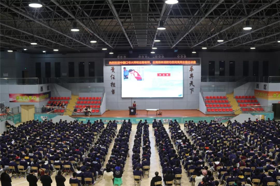 12月15日晚,衡川的體育館內(nèi)燈火通明,座無(wú)虛席,1700余名衡川師生正享受著一場(chǎng)精神的盛宴——中國(guó)口書(shū)大師和志剛、云南森林消防功臣何亮走進(jìn)“雙百講堂”,與衡川師生分享其勵(lì)志人生。