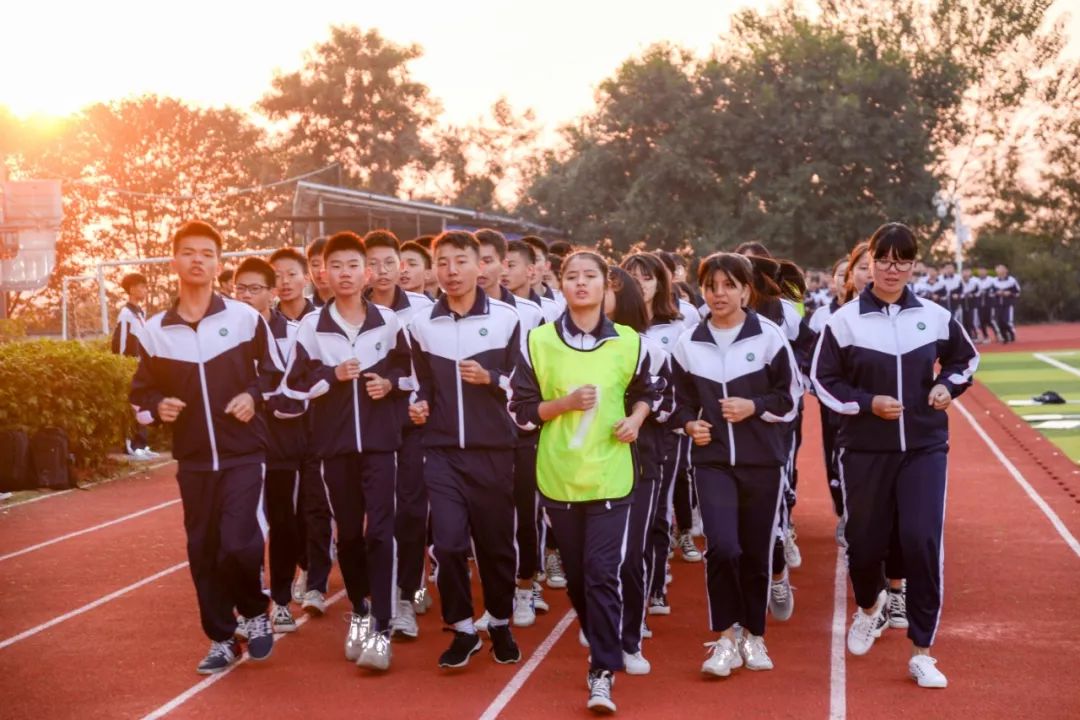 第一縷晨曦射穿薄霧,迎來清晨,我校足球場上早已青春飛揚,各系部的同學們以整齊的步伐和響亮的口號喚醒高新校園,這是我校學生每天晨跑活動的場景。