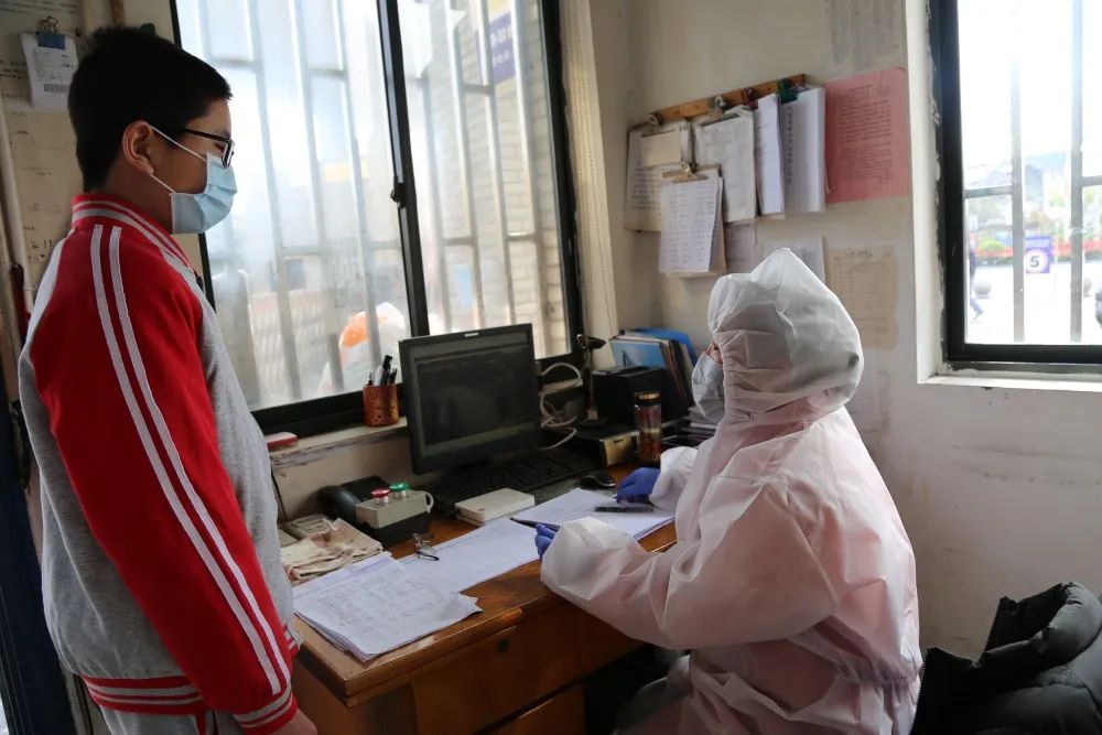 醫(yī)務室汪醫(yī)生用水銀體溫計給周同學測量體溫為37.3度后,按照一人一表仔細詢問和核對:你和你家人14天內(nèi)是否離開過嘉興?是否接觸過來自武漢市及周邊地區(qū)、或境內(nèi)其他有病例報告的社區(qū)、或境外疫情嚴重國家或地區(qū)的發(fā)熱或有呼吸道癥狀的患者?是否接觸過湖北或境外歸國人員?