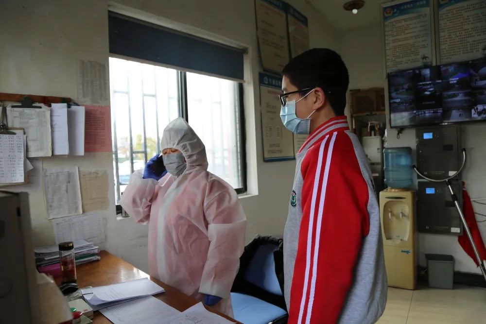 在臨時隔離室,學校汪醫(yī)生使用水銀體溫計對學生進行第三次測量,體溫為38.0度,按照一人一表認真詢問該生情況:你和你家人14天內(nèi)是否離開過嘉興?是否接觸過來自武漢市及周邊地區(qū)、或境內(nèi)其他有病例報告的社區(qū)、或境外疫情嚴重國家或地區(qū)的發(fā)熱或有呼吸道癥狀的患者?是否接觸過湖北或境外歸國人員?