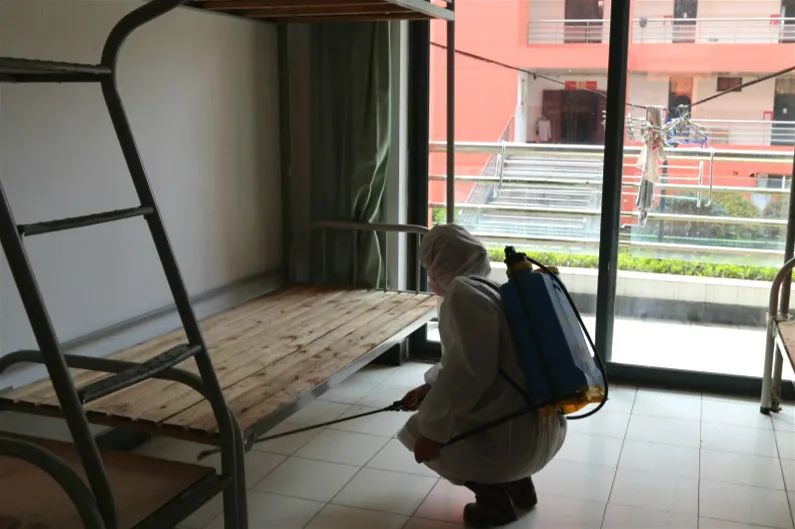 隨后,學校消毒人員對學生剛剛經(jīng)過的途徑和場所進行仔細徹底消毒。
