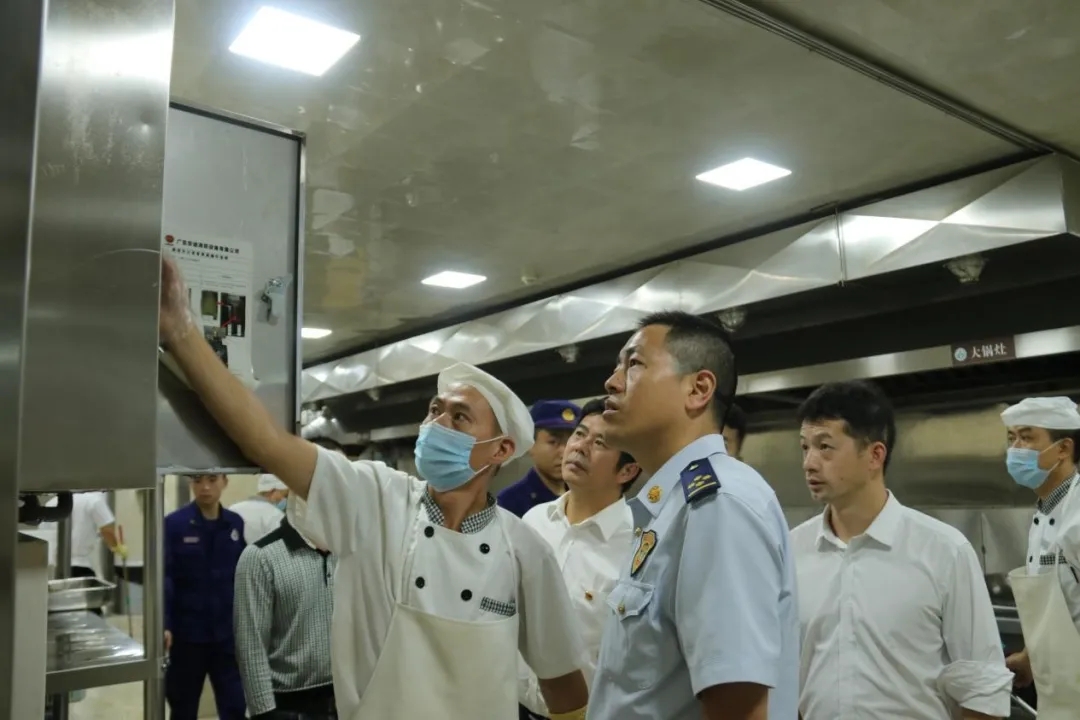 隨后,消防救援大隊一行來到學校食堂后廚,抽查食堂員工消防知識,并現(xiàn)場指導工作人員使用消防設備。