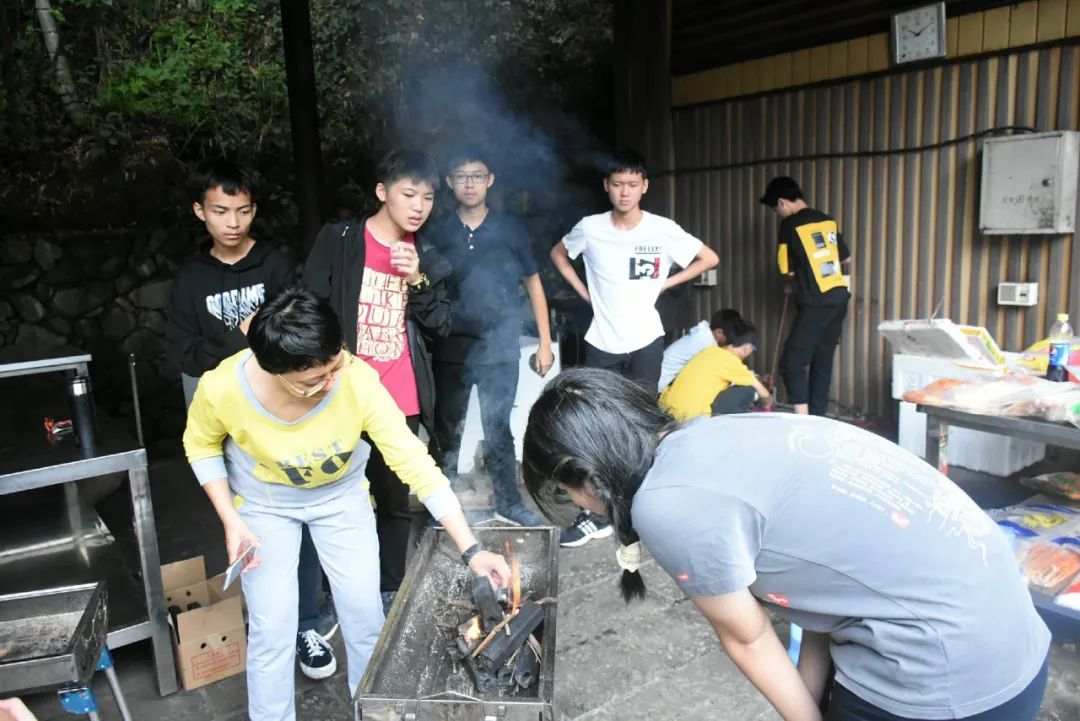 一串串肉被擺在烤架上,醬料被調(diào)配著,歡笑大鬧間,丫山下的我們是如此可愛,“大廚”翻著烤肉,平日不愛勞動的“大哥”這時也變得勤奮可靠,一直為大家烤食物,是“大廚”中的中流砥柱,老師們也檫拳磨掌,在燒烤一線奮戰(zhàn)。