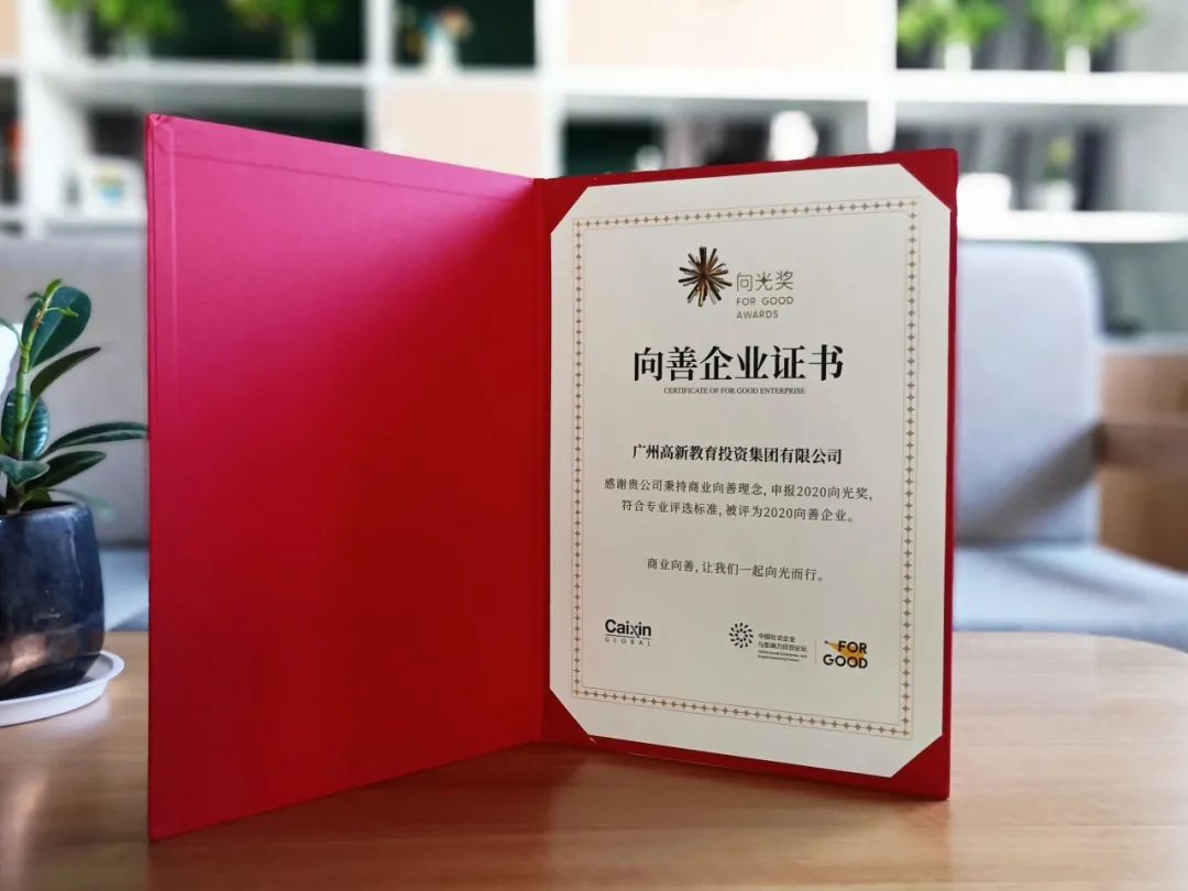 廣州高新教育集團(tuán)成功入選2020向光獎(jiǎng)|向善企業(yè)名錄,榮膺“向善企業(yè)”榮譽(yù)。