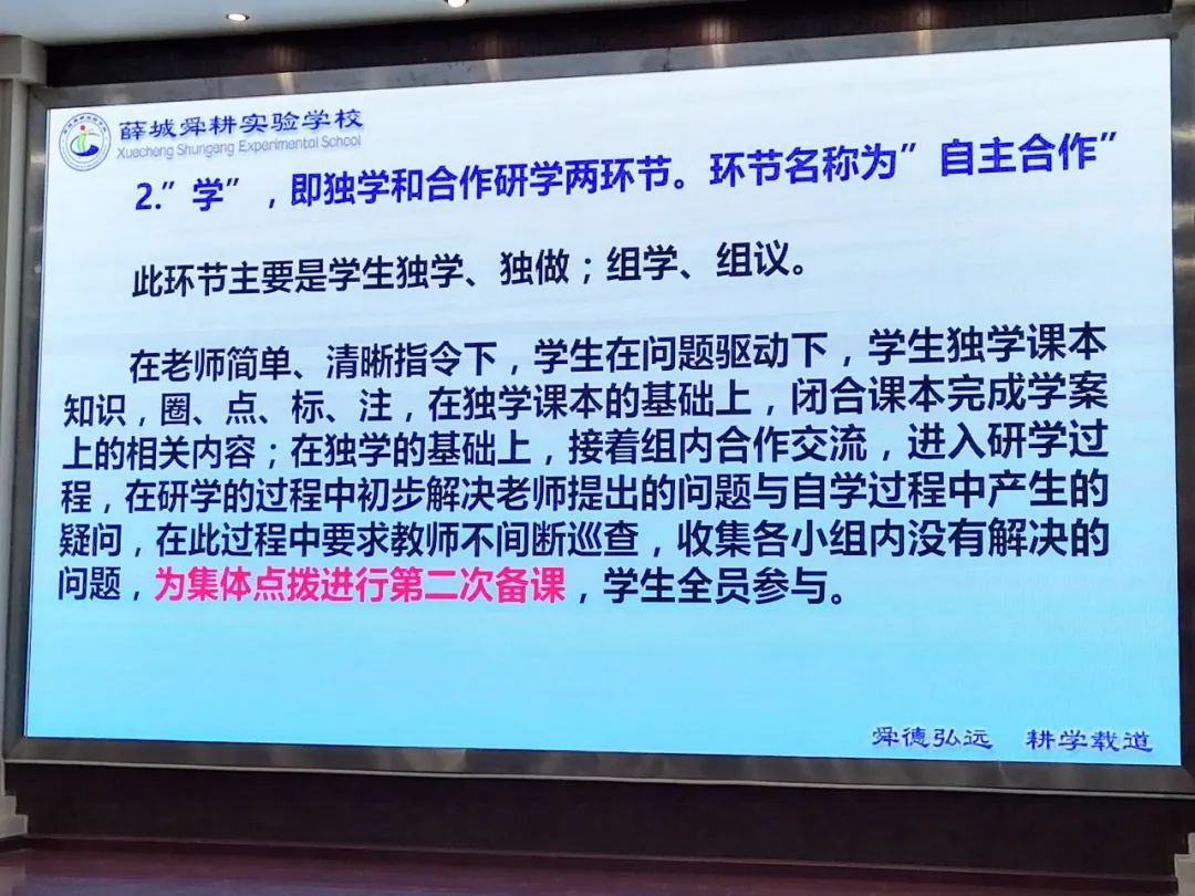 教育專家和大咖們所例舉的成功典范都有一個(gè)共性的地方:把時(shí)間還給孩子,孩子的自主學(xué)習(xí)才能提高學(xué)習(xí)效率。我們可以借鑒的是:課堂和課后把時(shí)間給孩子,在教師精心備課安排好任務(wù),精準(zhǔn)引導(dǎo)下,充分發(fā)揮孩子的主觀能動(dòng)性去學(xué),改被動(dòng)學(xué)習(xí)為主動(dòng)學(xué)習(xí)。這個(gè)過程對(duì)于我們習(xí)慣了灌輸式和填鴨式教學(xué)的老師來說,會(huì)是一個(gè)非常痛苦的過程,但是課堂有改變,學(xué)校才會(huì)改變。課堂模式也不是所有課型都按各個(gè)名校都已經(jīng)驗(yàn)證成功的“導(dǎo)、思、議、展、評(píng)、檢、用”高效6加1課堂教學(xué)七環(huán)節(jié)的模式,可以結(jié)合我校實(shí)際可以先在新授課中試行,從一種到復(fù)習(xí)課和講評(píng)課、習(xí)題課等多種課型逐步過度推行,還可以融入自己的特色,兩者相結(jié)合進(jìn)行優(yōu)化。山東省棗莊市薛城舜耕實(shí)驗(yàn)學(xué)校黃飛校長(zhǎng)的報(bào)告貼近實(shí)際,可操作性強(qiáng)。為了真正實(shí)現(xiàn)高效課堂,提出:導(dǎo),即激情導(dǎo)入和目標(biāo)導(dǎo)學(xué)。學(xué),即獨(dú)學(xué)和合作研學(xué)兩環(huán)節(jié)。展,即展示學(xué)習(xí)成果或困惑。評(píng),即點(diǎn)評(píng)精講,歸納總結(jié)。練‘即當(dāng)堂訓(xùn)練。測(cè),即總結(jié)與當(dāng)堂檢測(cè)。這就是一個(gè)很接地氣的特色模式。