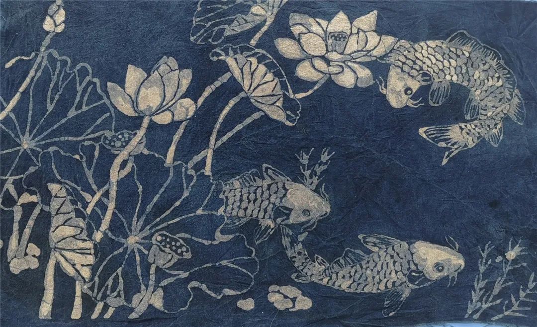 蠟染是用蠟刀蘸熔蠟繪花于布后以藍靛浸染,既染去蠟,布面就呈現(xiàn)出藍底白花或白底藍花的多種圖案。