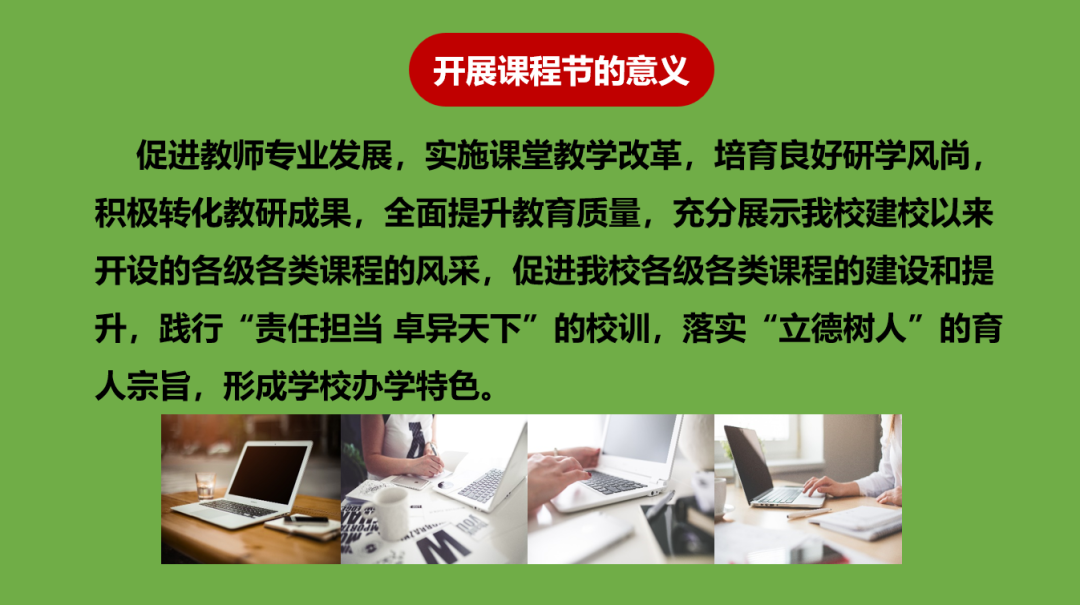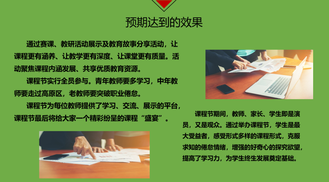 吳燕校長(zhǎng)首先從課程節(jié)的意義出發(fā),讓大家明確了課程節(jié)開展的重要意義。然后從國(guó)家級(jí)課程展示、地方課程展示及校本課程展示、大課堂展示、優(yōu)秀教研活動(dòng)展示、班主任班會(huì)課比賽、家長(zhǎng)講堂、優(yōu)秀校本課程匯展及匯演等七個(gè)方面進(jìn)行了具體的闡述,讓大家找到了落實(shí)的方向。最后吳燕校長(zhǎng)對(duì)本次課程節(jié)的圓滿進(jìn)行表達(dá)了衷心的祝愿和滿滿的期待。她表示:本次課程節(jié)為每位教師提供了學(xué)習(xí)、交流、展示的平臺(tái),最后將給大家一個(gè)精彩紛呈的課程“盛宴”。課程節(jié)期間,教師、家長(zhǎng)、學(xué)生即是演員,又是觀眾。通過(guò)舉辦課程節(jié),學(xué)生是最大受益者,感受形式多樣的課程形式,克服求知的倦怠情緒,增強(qiáng)的好奇心的探究欲望,提高了學(xué)習(xí)力,為學(xué)生終生發(fā)展奠定基礎(chǔ)。