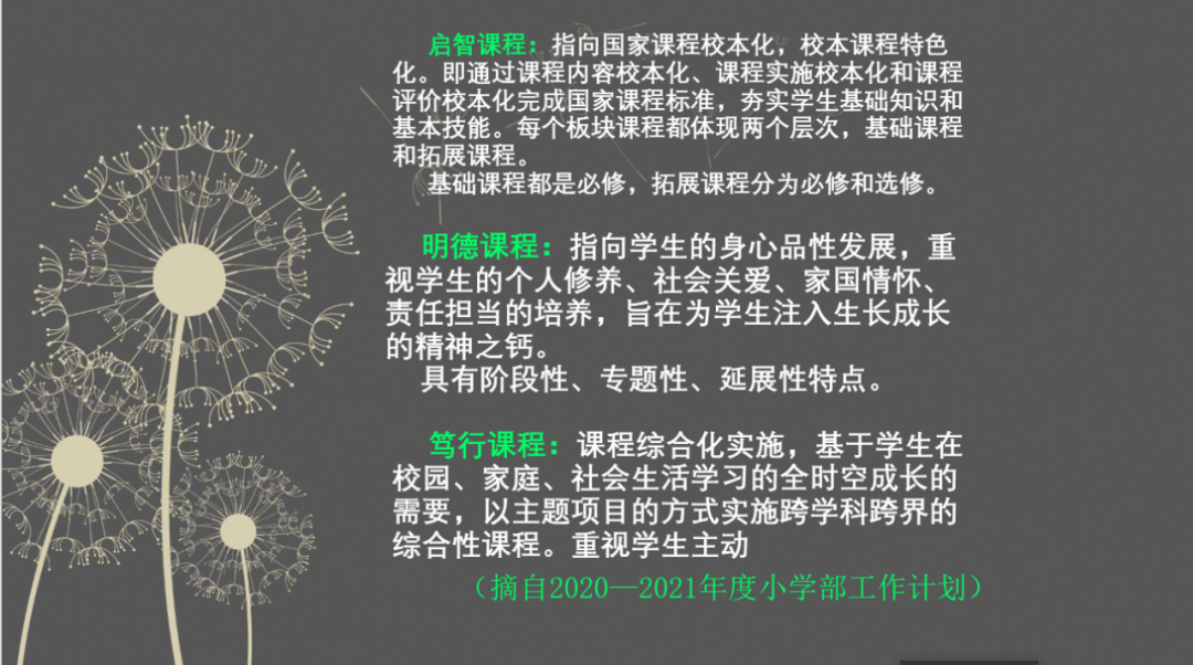 小學(xué)部鐘小娟校長(zhǎng)結(jié)合小學(xué)部現(xiàn)有的特色課程作了《課程理念與實(shí)施》主題報(bào)告。