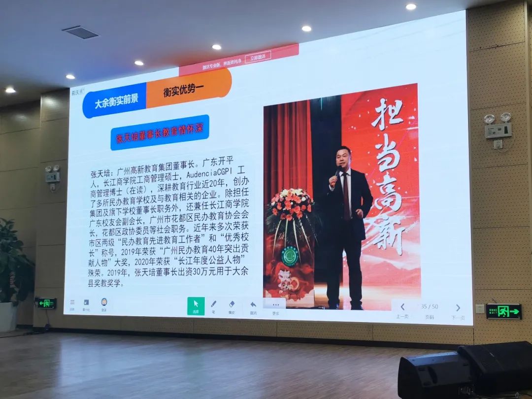 接著,曾局長以近三年大余教育的輝煌成績?yōu)槔?,簡析大余民辦教育的光明前景。曾局長指出,大力發(fā)展民辦教育是十分重要的,民辦教育不僅有利于積蓄社會教育資源,滿足人民群眾對優(yōu)質(zhì)教育的強烈渴望,且機制靈活、適應(yīng)市場、講求實效,能夠有效地促進教育供給的多樣化。更重要的是,大余衡實有著強大的教育實力背景,具有七大獨有的優(yōu)勢: