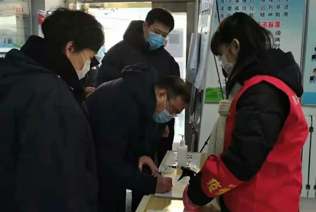 ▲ 協(xié)助社區(qū)開(kāi)展入戶登記工作,為居民進(jìn)行體溫監(jiān)測(cè),并簽署居家承諾書(shū)。