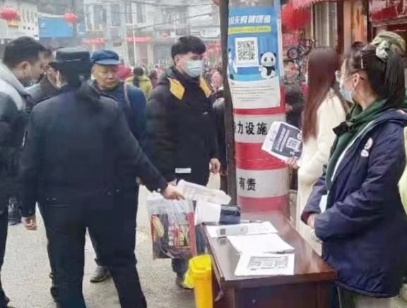 ▲ 走到街頭、路口、超市等地方,發(fā)放傳單,開(kāi)展健康碼、行程碼等防疫宣傳咨詢工作。