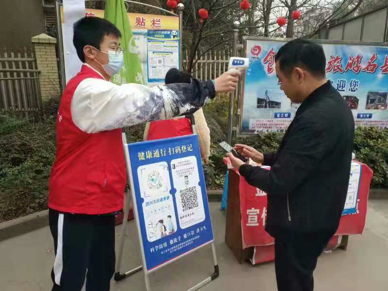 ▲ 到自貢鐘云山紅十字醫(yī)院,打掃衛(wèi)生,幫助測(cè)體溫、檢測(cè)健康碼,做力所能及之事向醫(yī)務(wù)工作者致敬。