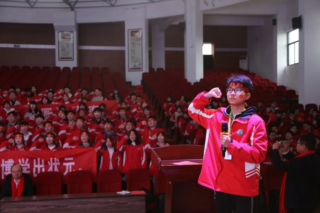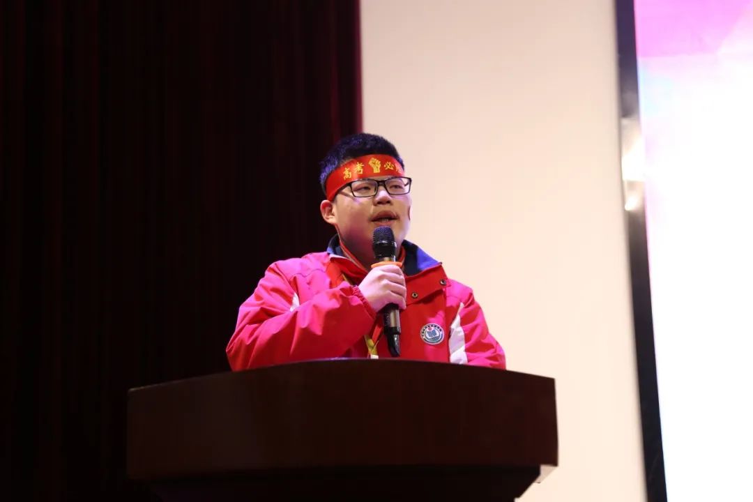 大會第四項,高三1班蔡澄寬同學代表高三全體同學發(fā)言,他向所有正值青春年華的高三學子發(fā)起號召:自信拼搏,不退縮,不彷徨,努力搏長空,舉目望蒼穹,圓夢火紅六月。