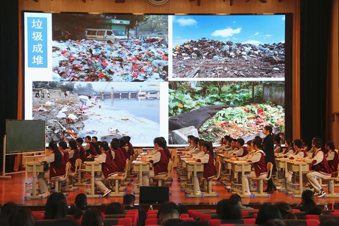 初二年級(jí)11班班主任李玲以《垃圾是放錯(cuò)的資源》為主題,通過數(shù)據(jù)分析、學(xué)生展示,為大家講解了如何進(jìn)行正確的垃圾分類,保護(hù)環(huán)境和資源再利用。