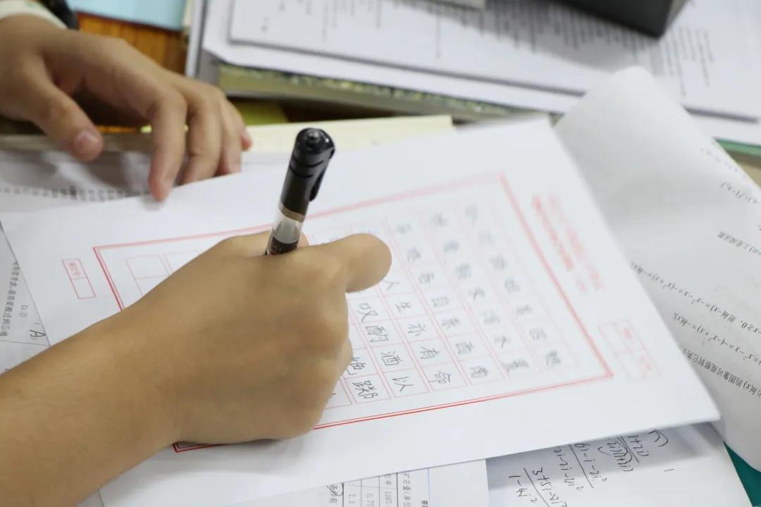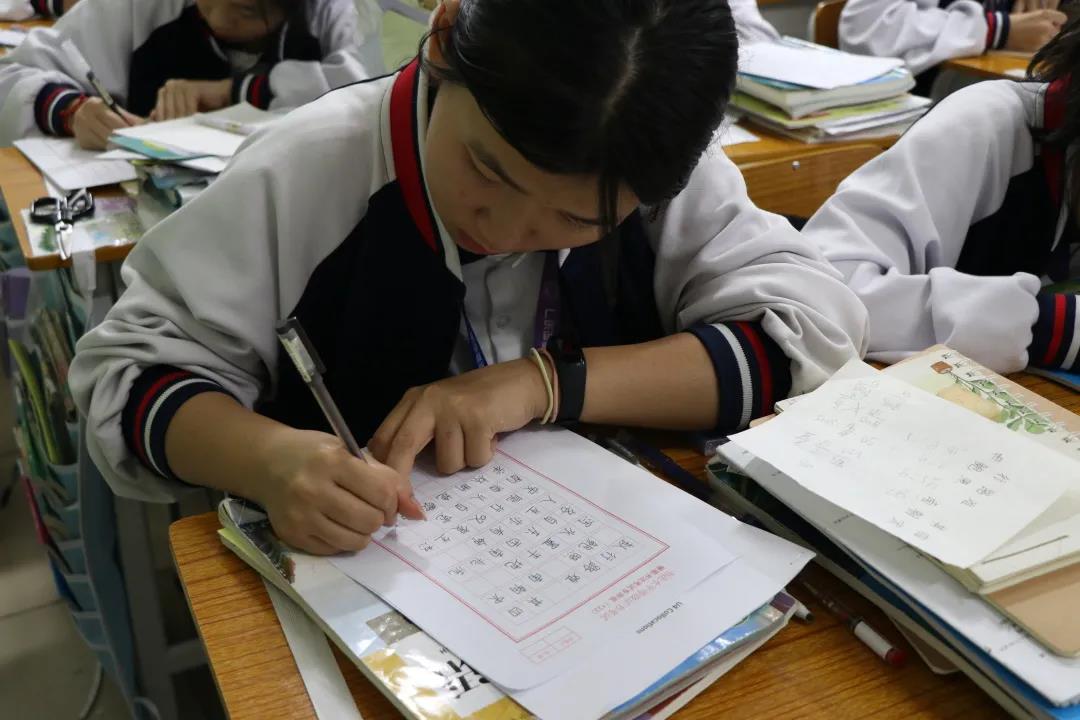 在初賽環(huán)節(jié),班級是練場,也是賽場。同學(xué)們在接到比賽通知后,認(rèn)真練字,摩拳擦掌。