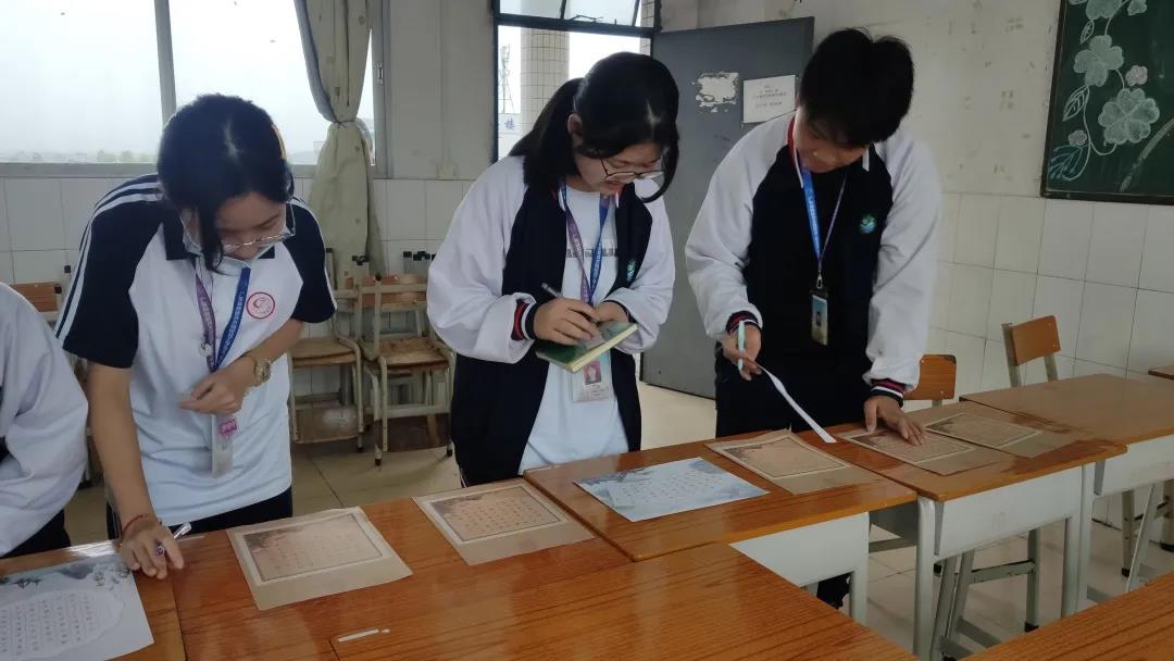本次初賽除了語文課組老師作為評委外,還特邀了上一屆獲硬筆書法比賽第一名的韋家麗(2班)、張寶兒(4班)、牟星宇(2班)、何子?jì)梗?班)、于珊珊(2班)、劉語晴(4班)、王思淇(3班)、楊欣冉(3班)等8位學(xué)生作為小評委。初賽以班級為單位進(jìn)行,每位同學(xué)都有資格參賽,賽后經(jīng)評委選出入圍選手參與決賽。